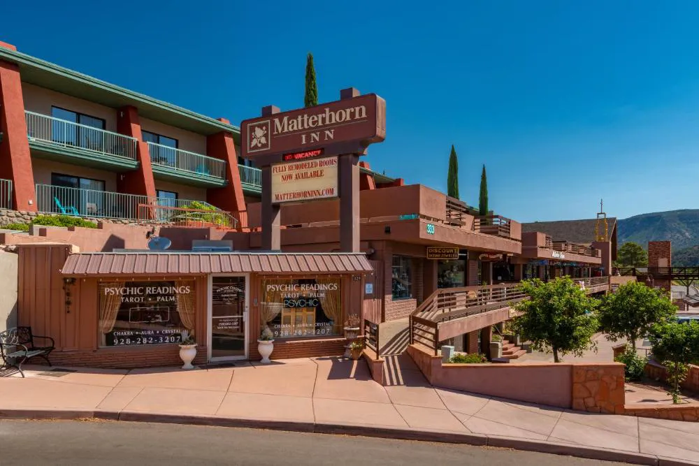 Enjoy recreational amenities such as a hot tub and a seasonal outdoor pool. This hotel also features complimentary wireless internet access, concierge services, and a television in a common area. Grab a bite from the snack bar/deli serving guests of Matterhorn Inn. A complimentary on-the-go breakfast is served daily from 8:00 AM to 10:00 AM. Featured amenities include a business center, luggage storage, and a safe deposit box at the front desk. Free self parking is available onsite. Make yourself at home in one of the 24 air-conditioned guestrooms. Your bed comes with down comforters and premium bedding. Complimentary wireless internet access is available to keep you connected. Conveniences include safes and desks, as well as phones with free local calls. With a stay at Matterhorn Inn in Sedona (Uptown Sedona), you'll be within a 5-minute drive of Tlaquepaque Arts and Crafts Village and Oak Creek Canyon. This hotel is 7.2 mi (11.7 km) from Bell Rock and 12.3 mi (19.7 km) from Red Rock State Park. In Sedona (Uptown Sedona) English, Romanian, Hungarian, Spanish Visa, Debit cards, Discover, Cash, American Express, Mastercard