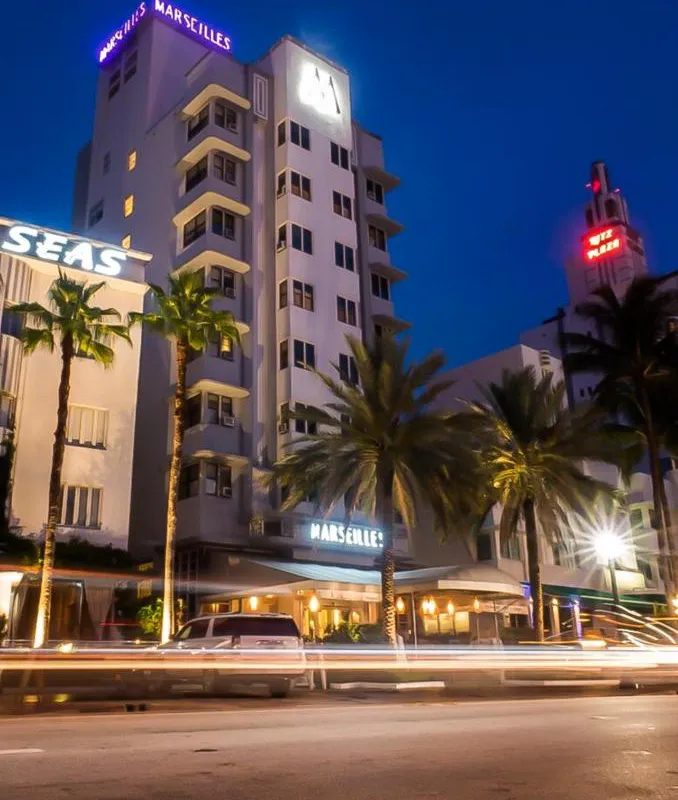 This oceanfront hotel with direct access to a private beach and a boutique Art Deco-style atmosphere. It is surrounded by famous nightclubs, restaurants and shopping centers on vibrant Collins Avenue and features two on-site bars and a restaurant. The Marseilles Beachfront Hotel places guests within 5 minutes' walk of Miami Beach Convention Center and 10 minutes' walk of the numerous shops, cafes, and galleries of Lincoln Road Shopping Mall. The Art Deco district is but 7 minutes' drive. Every guestroom includes a 42-inch flat-screen TV, electronic safety deposit box, and coffee and tea-making facilities. Private bathrooms come equipped with a shower. On-site Backyard Bar is nestled amid the pool cabanas—which can be reserved for a fee—and greenery while M Bar & Lounge is an indoor bar preparing signature cocktails. The hotel also offers American fare for breakfast, lunch, and dinner. With outdoor swimming pool and hammocks, the Marseilles is perfect for enjoying the Florida weather. Lounge chairs and beach umbrellas are available. The hotel is nonsmoking throughout, including the exterior.