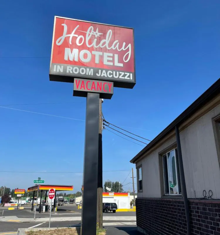 This motel offers designated smoking areas. Free self parking is available onsite. Make yourself at home in one of the 22 air-conditioned rooms featuring plasma televisions. Complimentary wireless internet access keeps you connected, and satellite programming is available for your entertainment. Bathrooms have bathtubs and bathrobes. Conveniences include desks and complimentary bottled water, and housekeeping is provided on request. With a stay at Holiday Motel in Portland (Northeast Portland), you'll be a 5-minute drive from Jantzen Beach Center and 8 minutes from Moda Center. This motel is 3.9 mi (6.2 km) from Oregon Convention Center and 3.6 mi (5.8 km) from University of Portland. In Portland (Northeast Portland) Hindi, English Visa, Debit cards, Discover, Cash, American Express, Google Pay, Mastercard, Apple Pay