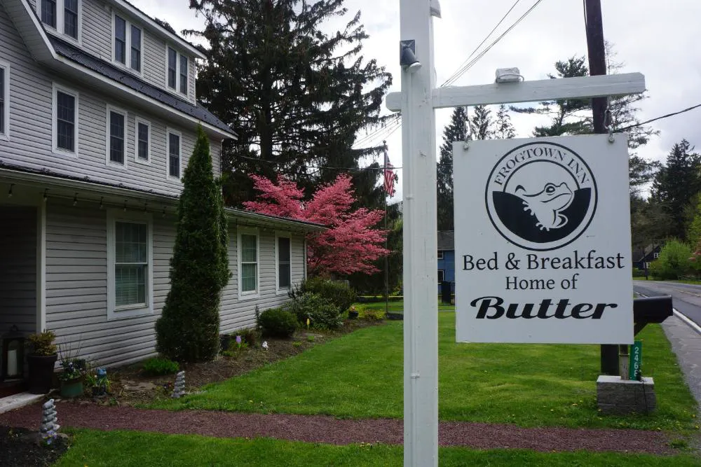 Take in the views from a garden and make use of amenities such as complimentary wireless internet access and a communal living room. Enjoy a satisfying meal at Butter serving guests of The Frogtown Inn. A complimentary cooked-to-order breakfast is served daily from 8:30 AM to 10:00 AM. Free self parking is available onsite. Make yourself at home in one of the 16 air-conditioned rooms featuring LED televisions. Complimentary wireless internet access keeps you connected, and satellite programming is available for your entertainment. Bathrooms feature showers, complimentary toiletries, and hair dryers. Conveniences include coffee/tea makers and complimentary bottled water, and housekeeping is provided daily. With a stay at The Frogtown Inn in Canadensis, you'll be near ski lifts, within a 15-minute drive of Mount Airy Casino and High Acres Park. This bed & breakfast is 12.3 mi (19.7 km) from Kalahari and 15.8 mi (25.4 km) from Camelback Ski Area. Near High Acres Park English Visa, Debit cards, Cash not accepted, Discover, American Express, Mastercard