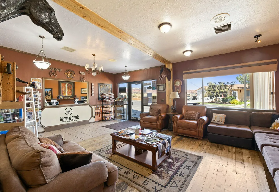 Be sure to enjoy recreational amenities including an indoor pool and a spa tub. This hotel also features complimentary wireless internet access, a picnic area, and a banquet hall. Enjoy a meal at Broken Spur Steakhouse or snacks in the hotel's coffee shop/cafe. A complimentary buffet breakfast is included. The property is closed between December 4 and February 28. The property is closed: Christmas Eve, Christmas Day, New Year's Eve, and New Year's Day. Featured amenities include complimentary wired internet access, a business center, and express check-out. Free self parking is available onsite. Make yourself at home in one of the 58 air-conditioned rooms featuring refrigerators. Complimentary wired and wireless internet access is available. Bathrooms feature shower/tub combinations, complimentary toiletries, and hair dryers. Conveniences include blackout drapes/curtains, housekeeping is provided daily, and microwaves can be requested. When you stay at Broken Spur Inn & Steakhouse in Torrey, you'll be in a national park, within a 15-minute drive of Capitol Reef National Park and Capitol Reef National Park Visitor Center. This hotel is 1.2 mi (1.9 km) from Dixie National Forest and 2.2 mi (3.6 km) from Gifford Homestead. Near Dixie National Forest English, Spanish Visa, Debit cards, Cash not accepted, Discover, Mastercard